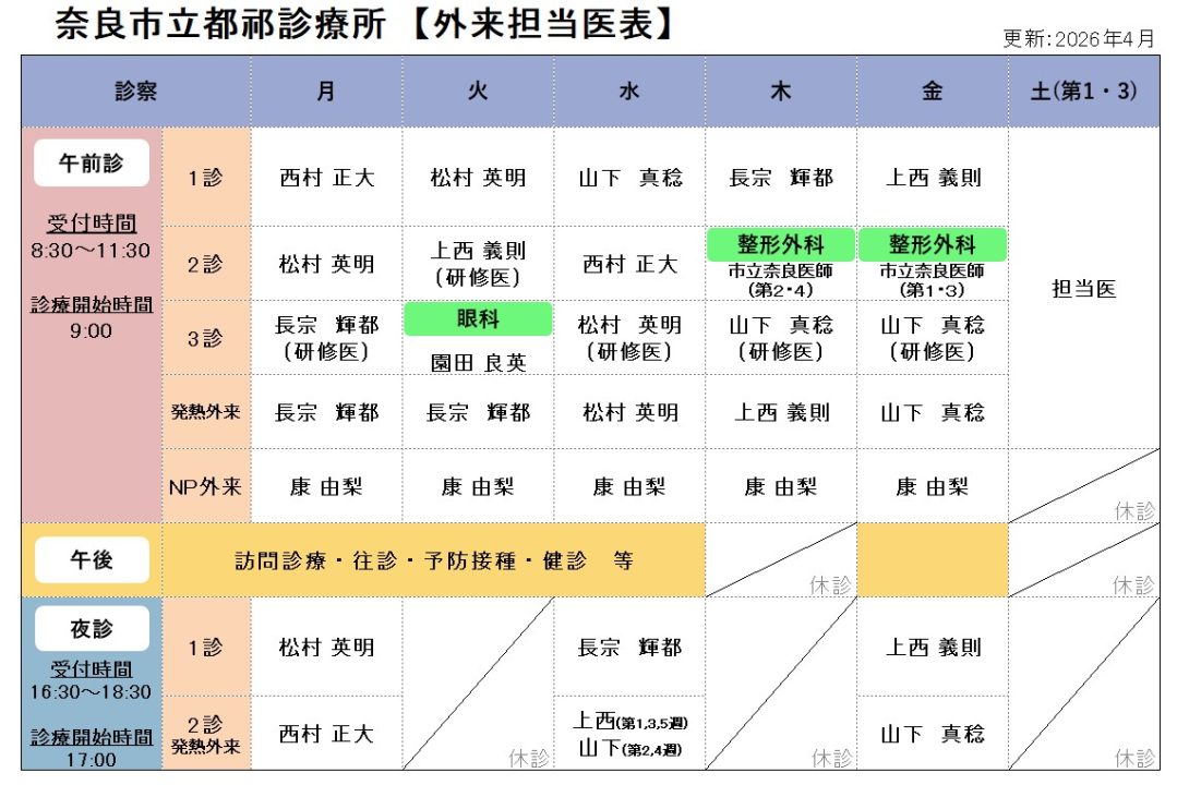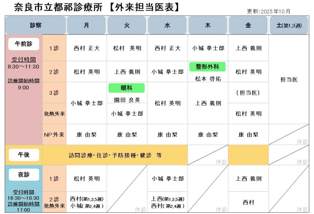 ※ 往診や臨時業務等により,担当医が変更することがあります.