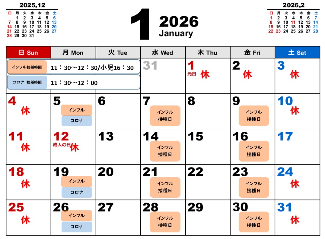 | 小児予防接種 | BCG,ヒブ,プレベナー,5種混合,B型肝炎,ロタ | 月 14:30〜 |